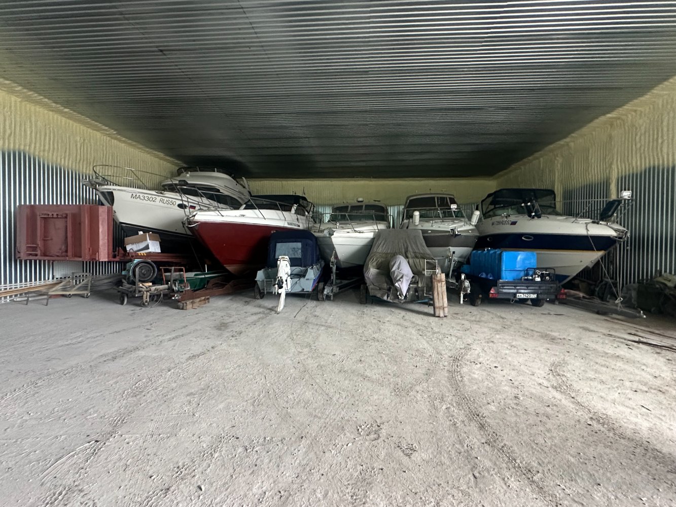 - - стоянка моторных яхт в ангаре